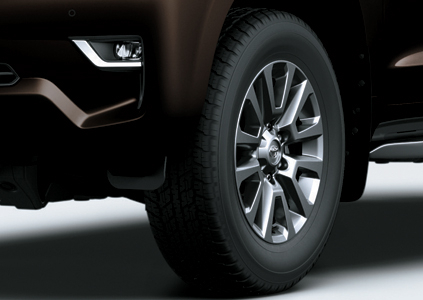 Bánh xe lớn với mâm đúc đường kính 18-inch 6 chấu kép mạnh mẽ, đặc trưng cho dòng xe thể thao việt dã giúp xe ổn định và dễ điều khiển hơn, tạo cảm giác êm ái cho hành khách trên mọi địa hình.