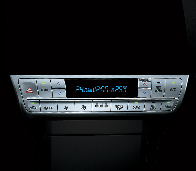 Hệ thống điều hoà tự động với các nút điều chỉnh hiện đại được thiết kế độc đáo với 2 bảng điều khiển ở hàng ghế trước và sau cho phép điều chỉnh 3 vùng không khí độc lập tạo sự thoải mái cho mọi hành khách. Ngoài ra, chế độ lọc vi bụi giúp loại bỏ những hạt bụi cực nhỏ và mùi trong xe đem lại bầu không khí trong lành.